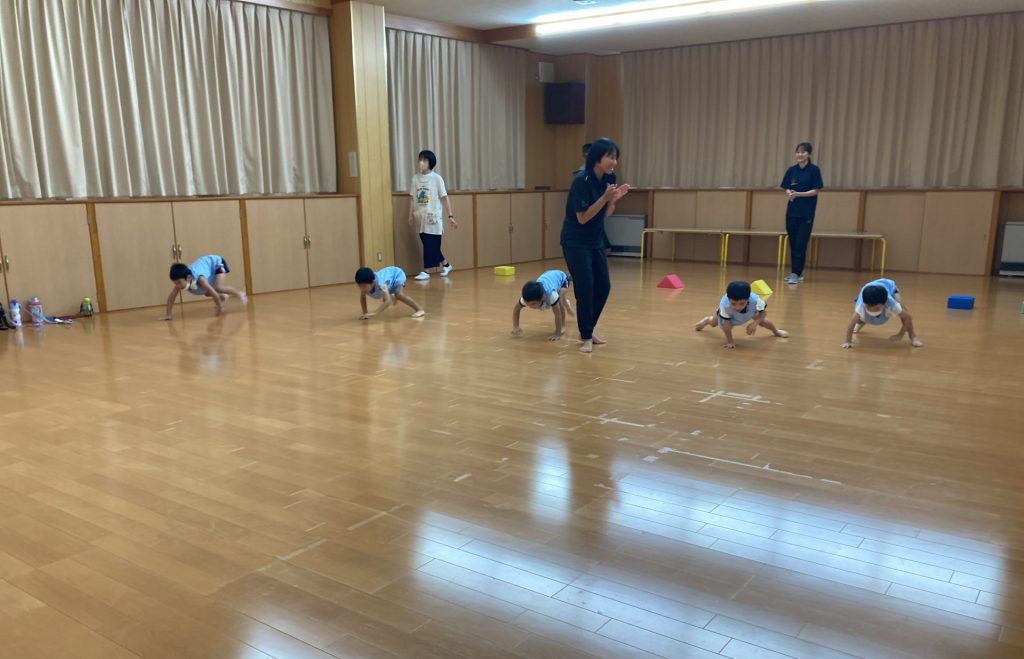 9月4日に年長さんが新潟医療福祉大学の亀岡先生による「脱子どもロコモ運動あそび出前教室」を行い、握力や体支持持続時間等を計測していただきました。先日その計測結果とともに「これだけ全国平均値以上のお子様が揃う園は今まで出会ったことがありません!」との嬉しいお言葉をいただき、子どもたちと喜んでいるところです。何が良かったのでしょう…砂利の園庭で走りまわっているからでしょうか?(大人は歩くだけで体力消耗。)ちょっぴり敬遠されがちな和式トイレを使っているからでしょうか?理由はよくわかりませんが、これからも元気一杯身体をたくさん動かして遊んでいきたいと思います!